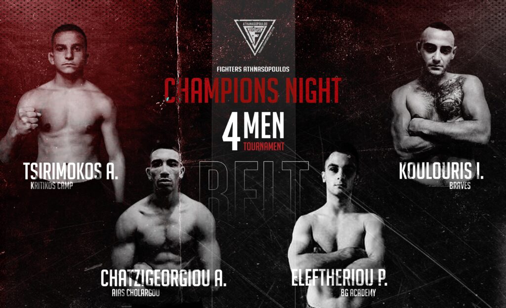 Η μακροβιότερη διοργάνωση στην Ελλάδα, επιστρέφει στην Fighters Arena στον Πειραιά, με δυνατές αναμετρήσεις στα ρινγκ του Champions Night με τους αθλητές – Τσιριμόκος, Χατζηγεωργίου, Ελευθερίου και Κουλούρη να αγωνίζονται για την ζώνη της διοργάνωσης.